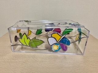 ポリスチレンのボックスにグラスアートしたテッシュケースです。