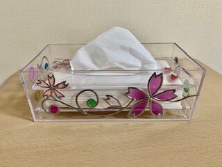 ポリスチレンのボックスにグラスアートしたテッシュケースです。