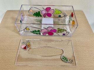 ポリスチレンのボックスにグラスアートしたテッシュケースです。
