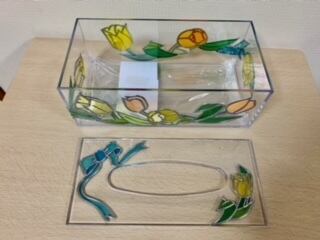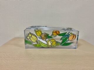 ポリスチレンのボックスにグラスアートしたテッシュケースです。