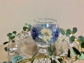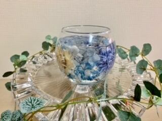 素材:ガラス(耐熱)、ジェルワックス、ドライフラワー、プリザーブドフラワー