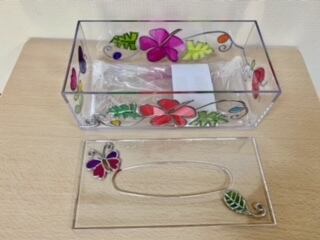 ポリスチレンのボックスにグラスアートしたテッシュケースです。
